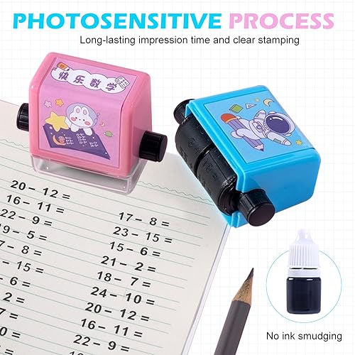 FACILE DA USARE: basta scorrere i problemi matematici per una rapida stampa e l'inchiostro si asciuga rapidamente. Ogni timbro didattico viene fornito con un flacone di inchiostro, sufficiente per una lunga durata. Grazie ai numeri regolabili e allo scorrimento fluido, è possibile stampare fino a 100 problemi di matematica in modo efficiente e veloce.