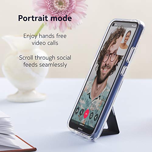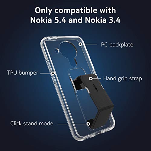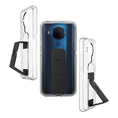 Nokia Custodia con supporto e supporto per Nokia 5.4, custodia protettiva trasparente con impugnatura nera, supporto per telefono e supporto, trasparente