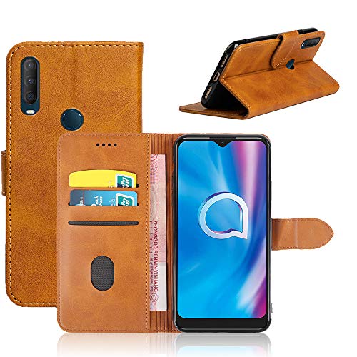NOKOER Cover per Alcatel 1S 2020, Staffa Verticale Portafoglio in Pelle Custodia [Porta Carta] [Nuovo Materiale] Antiurto Anti Impronta Digitale Case - Giallo