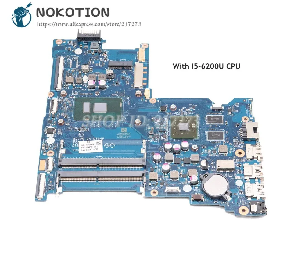 NOKOTION For HP 15-AY 15-ay015ds Laptop Motherbard SR23Y I5-6200U CPU BDL50 LA-D704P 854936-601 854936-001 R5 M330 Video card
