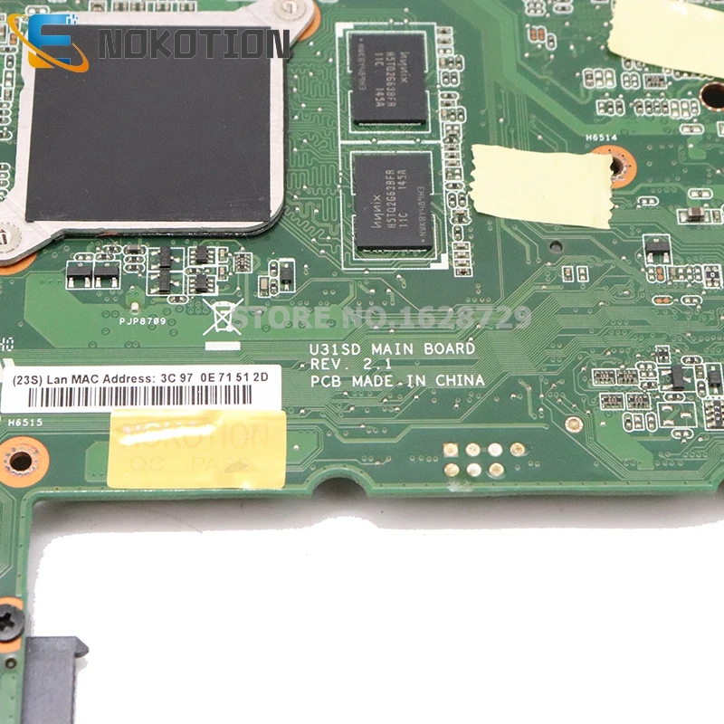 NOKOTION Laptop motherboard For ASUS U31SG U31SD X35S MAIN BOARD HM65 DDR3 Gefore 610M GPU 60-NY5MB1000-A02 69N0MPM10A02