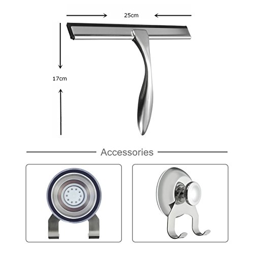 Resistente spatola per doccia: durevole lama in acciaio inossidabile, con gomma spazzolata su un lato
