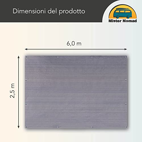 Mr Nomad stuoia campeggio 6,0 m x 2,5 m - tappeto da campeggio blu/grigio in polietilene, pavimento ideale per veranda con borsa per il trasporto, 4 picchetti a T e 12 chiodi in acciaio