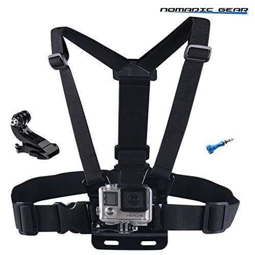 Nomadi Gear chest Harness strap Mount, metallico zigrinata, design e J-Hook Mount sono completamente regolabili per adattarsi a tutte le GoPro HD Hero 5 Hero 4 Hero 3 + Hero 3 Hero 2 e SJCAM, Xiaomi Yi Action Camera