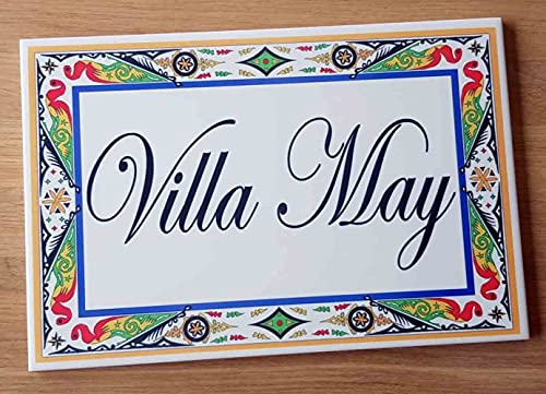 Targhetta per porta della casa o della maiolica con testo personalizzabile a tua scelta realizzato tramite trasferimento fotografico con 4 strati di vernice di protezione UV (2 diverse vernici)