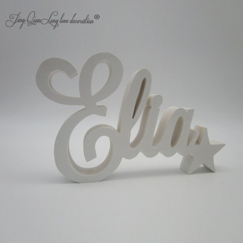 La scrittura in legno può essere appesa o posizionata su una mensola o un tavolo. I colori utilizzati sono a base d'acqua e per la finitura uso una trasparente lucida per rendere sempre perfetta e intatta nel tempo. Il nome può anche essere realizzato in colore naturale con trasparente lucido. La scrittura viene levigata a mano e se è molto lunga può essere costruita in più parti e poi assemblata. Il nome o la scrittura sono abbelliti con una stella o un cuore, bianco a colori (per un bambino la stella e per un bambino il cuore). Su richiesta, stella o piccolo cuore può essere realizzato in altri