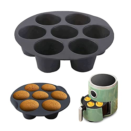 NOMEY 2 pezzi Stampo muffin accessori friggitrice 7 pirottini in silicone cupcake Teglie per Friggitrice ad Aria per Muffin in Silicone 7 Tazze Pirottini da Forno per Torte Cioccolatini (6 pollici)