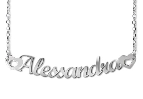 NOMISSIMO Collana con Nome Alessandra e Cuori in Argento 925 rodiato Anallergico Made in Italy Modello Smart G11