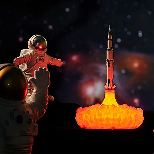 【Design unico】 La luce della luna realizzata con la tecnologia di stampa 3D, la forma realistica del lancio del razzo, la superficie della lampada del razzo è molto vicina alla scena del lancio del razzo, facendoti sentire come se ci fossi dentro. È anche una buona decorazione.