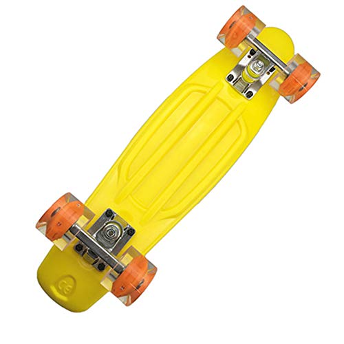 None branded Skateboard Completo, Skateboard per Bambini, Skateboard per Principianti, Ruota ammortizzatrice a LED antiusura, Adatto per Adolescenti, Bambini, Principianti,Giallo