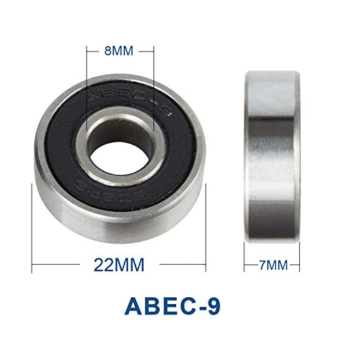 NONMON Cuscinetti Bearings per Skateboard Longboard Rullo Cuscinetto ABEC 9,608 RS,8 Pezzi,Nero