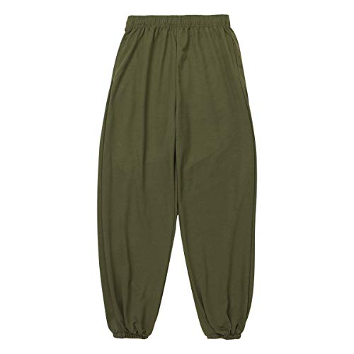 Nonotse Pantaloni casuali di sport di colore solido delle donne, pantaloni della tuta sciolti del polsino della caviglia della vita elastica con, Verde militare, S