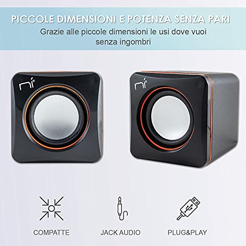 NONSOLOINFORMATICA NI - Casse per pc, altoparlanti con suono dinamico e jack da 3,5 mm, alimentazione USB, set di speaker con suono cristallino e sistema 3d a due canali, Dimensioni Ridotte, Nero