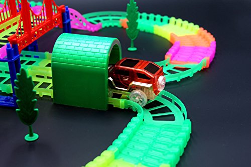 【 fantastici rennbahn Set 】: Neon Glow Twister Tracks Set contiene 135 gluehen al buio (4 gluehende colori fluo). Montaggio flessibile circuiti, a intermittenza 1 auto.Consegna con scatola, colore migliore compleanno regali i bambini.
