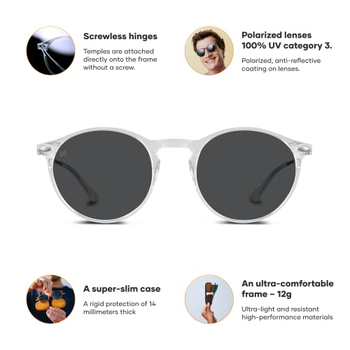 NOOZ Occhiali da sole polarizzati per uomo e donna - Protezione di categoria 3 - Colore cristallo - con custodia compatta - Collezione CRUZ