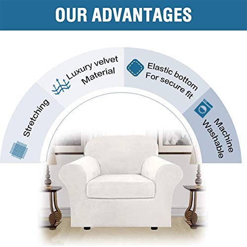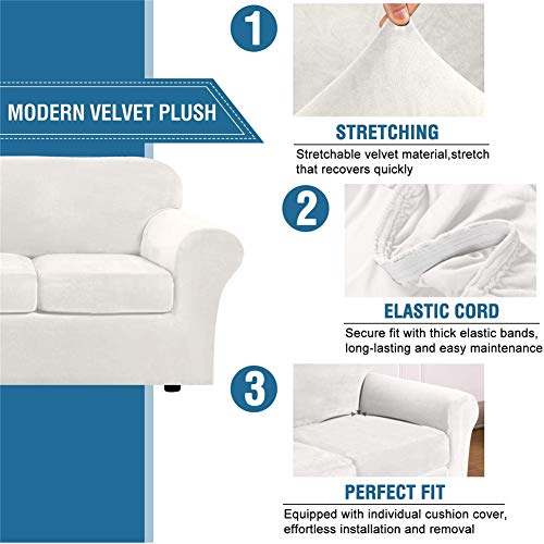 NOPEXTO Fodera per Divano in Velluto,Copridivano Elasticizzato,con 2 Fodere per Cuscino Separate, Protezione per Mobili Antiscivolo Morbida in Peluche (2 Posti (122-172 Cm),Avorio)