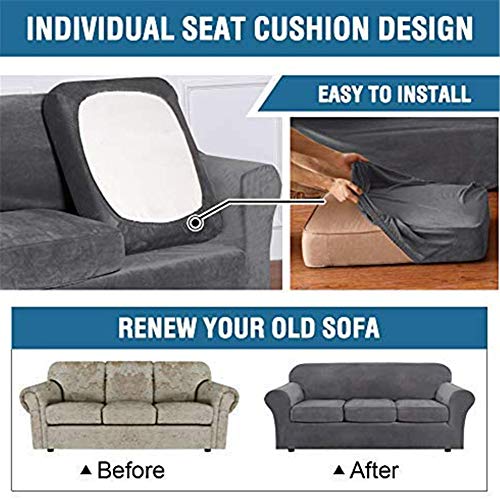 NOPEXTO Fodera per Divano in Velluto,Copridivano Elasticizzato,con 2 Fodere per Cuscino Separate, Protezione per Mobili Antiscivolo Morbida in Peluche (3 Posti (173-229 Cm),Grigio)