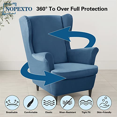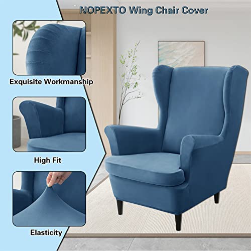 NOPEXTO 2 Pezzi Velluto Copripoltrona con Orecchie,Elasticizzato Fodera per Poltrona Antiscivolo,con Fondo Elastico Lavabile Sofa Protettore per Soggiorno (Zaffiro)