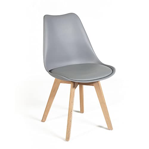 Norbe | (Set di 4 Sedie da Sala da Pranzo o Ufficio con gambe in legno di faggio e morbido cuscino di ecopelle |Dim: 50x48x 82 H cm (Grigio, 4)