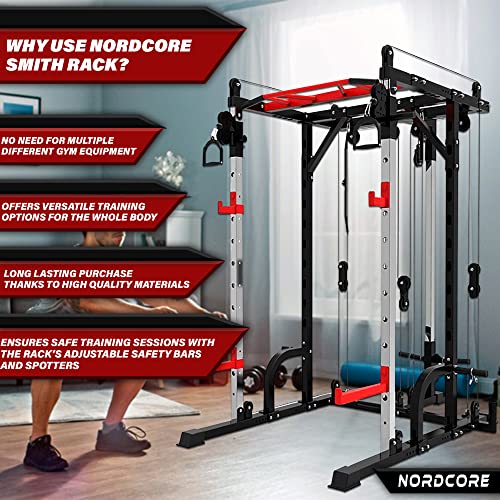 Nordcore Smith Rack - Macchina multifunzione regolabile Smith Machine, 110 x 140 x 230 cm