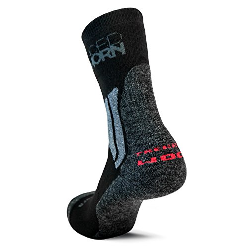 NORDHORN Calze da escursionismo in lana merino, Calze da trekking, Calze merino funzionali, Calze da uomo e donna per l'outdoor - imbottitura e smorzamento suola in spugna (Grigio, 41-43)