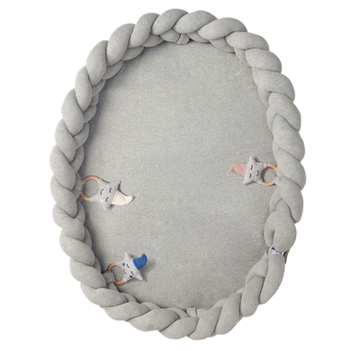 Il simpatico nido 3-1 in grigio non è solo un'attrazione, ma è anche multifunzionale e può quindi essere utilizzato per un periodo particolarmente lungo. Il nido letto è particolarmente grande, con le sue dimensioni di 90×60 cm. Questo lo rende ideale non solo per i neonati, ma anche per i bambini fino a 9 mesi. Se i bambini non si stanno ancora girando, il nido per neonati può essere utilizzato come bozzolo per dormire o come lettino da viaggio. Il serpente del letto è facile da rimuovere e può essere fissato e chiuso in modo sicuro con il velcro. Si adatta perfettamente al lettino, alla culla o al fasciatoio come protezione anticaduta. In questo modo può essere utilizzato anche successivamente nel lettino come protezione per la testa fino all'adolescenza del bambino. Il tappeto da gioco è morbidamente imbottito e può essere utilizzato come coperta per gattonare, sotto la palestrina o come fasciatoio. Gli occhielli in velcro sono perfetti per fissare saldamente i giocattoli del bambino. In questo modo il bambino avrà sempre qualcosa a portata di mano e potrà iniziare subito a giocare, sentire e scoprire. Inoltre, facilita il cambio del pannolino, perché il bambino può tenersi occupato e distrarsi. Il materiale, un cotone morbido e leggermente strutturato, è certificato Oeko Tex Standard 100 e testato per la sicurezza. Il nido per bambini è facile da lavare in lavatrice a 30 gradi. Non sbiadisce e non perde la forma. Questo lo rende particolarmente facile da curare. Dettagli sulla cura: Materiale: 100% cotone Imbottitura: 100% pile di poliestere traspirante Lavabile a 30 °C Dettagli del prodotto: Colore: grigio Dimensioni: circa 90 x 60 cm Uso multifunzionale Serpente letto rimovibile Ideale come lettino da viaggio Extra large e utilizzabile per lungo tempo OEKO-TEX® Standard 100: 21.0.52000 Hohenstein HTTI