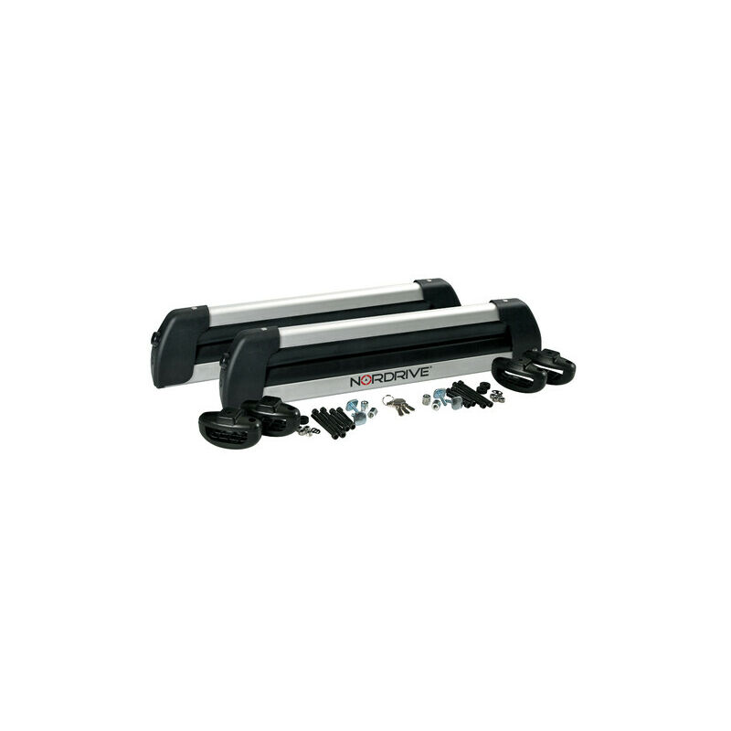 Coppia portasci universali per 4 paia di sci oppure 2 snow boards. Con chiave antifurto. In lega di alluminio, leggero e resistente alla corrosione.Gomma morbida e performante anche in condizioni di freddo estremo. Chiusura antifurto.IN DOTAZIONE:- Staffe per barre portatutto in acciaio (Max 57x60 mm)- Raccordi per barre portatutto in alluminio con profilo a ?T