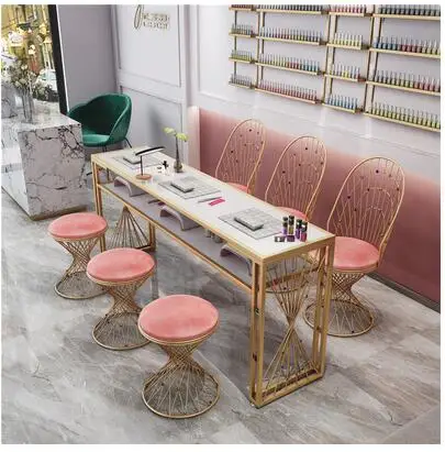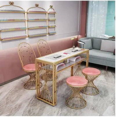 New Nordic Manicure Table and Chair Set Single and Double Beauty Shop online celebrity Marble Manicure Table