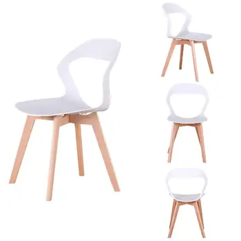 A set of 4 Nordic medieval modern minimalist chairs with wood feet, suitable for living room, dining room (White/Black/Brown))