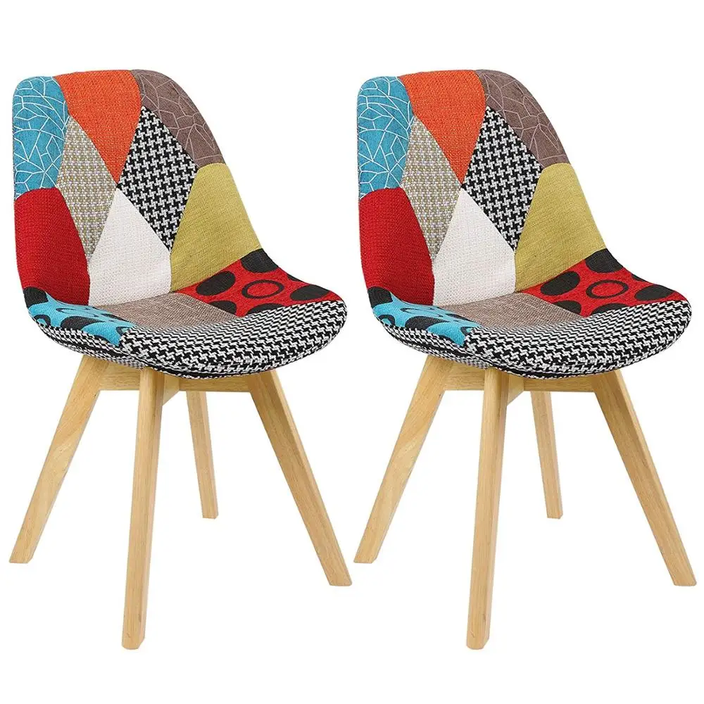 A set of 2 Nordic medieval style art dining chairs, beech wood feet retro design chairs, suitable for kitchen, dining room (red)