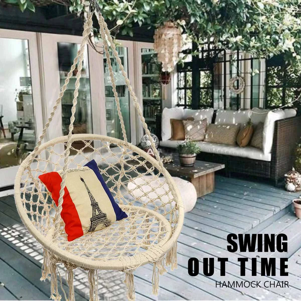 Nordic Round Hanging Hammock Chair Outdoor Garden Yard Indoor Bedroom Furniture Safety Swinging Chair For Child Adult