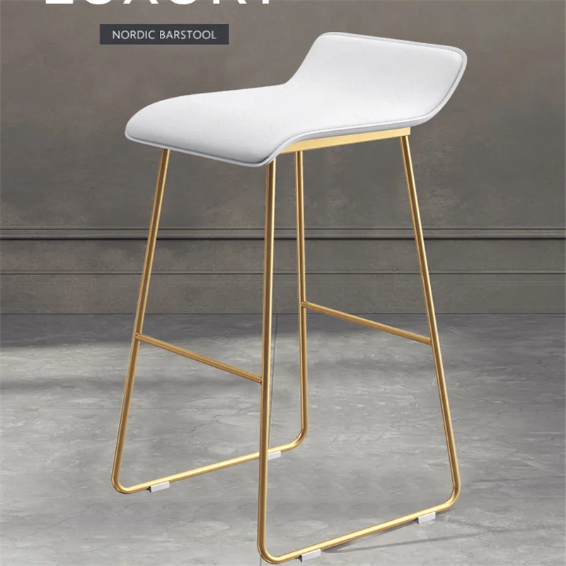 New Nordic bar stools modern Simple Golden Leg Cafe Lounge Stool Wrought Iron Gold High Chair Padded Bar Chairs Stools