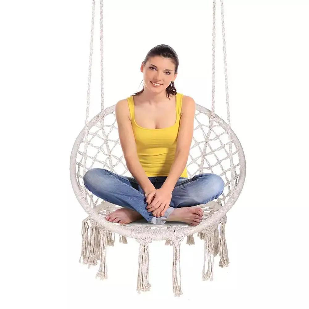 Nordic Style Hammock Swing Chair Hanging Kit Indoor Outdoor Beige Cotton Knitting Garden Tassels Rope Swing Balcony Chair
