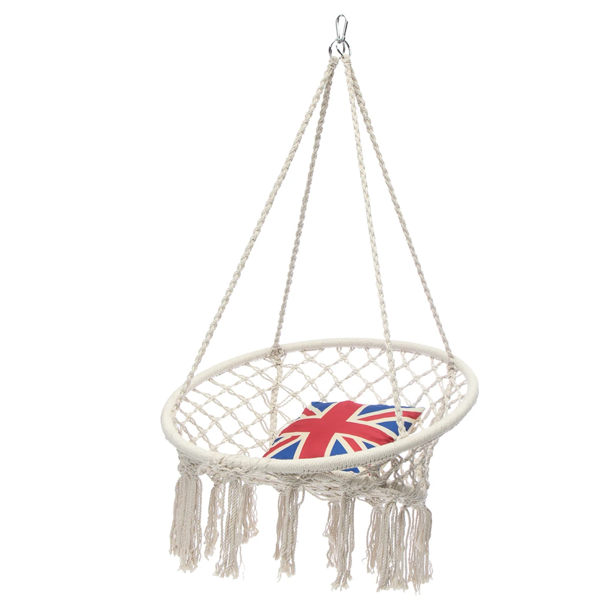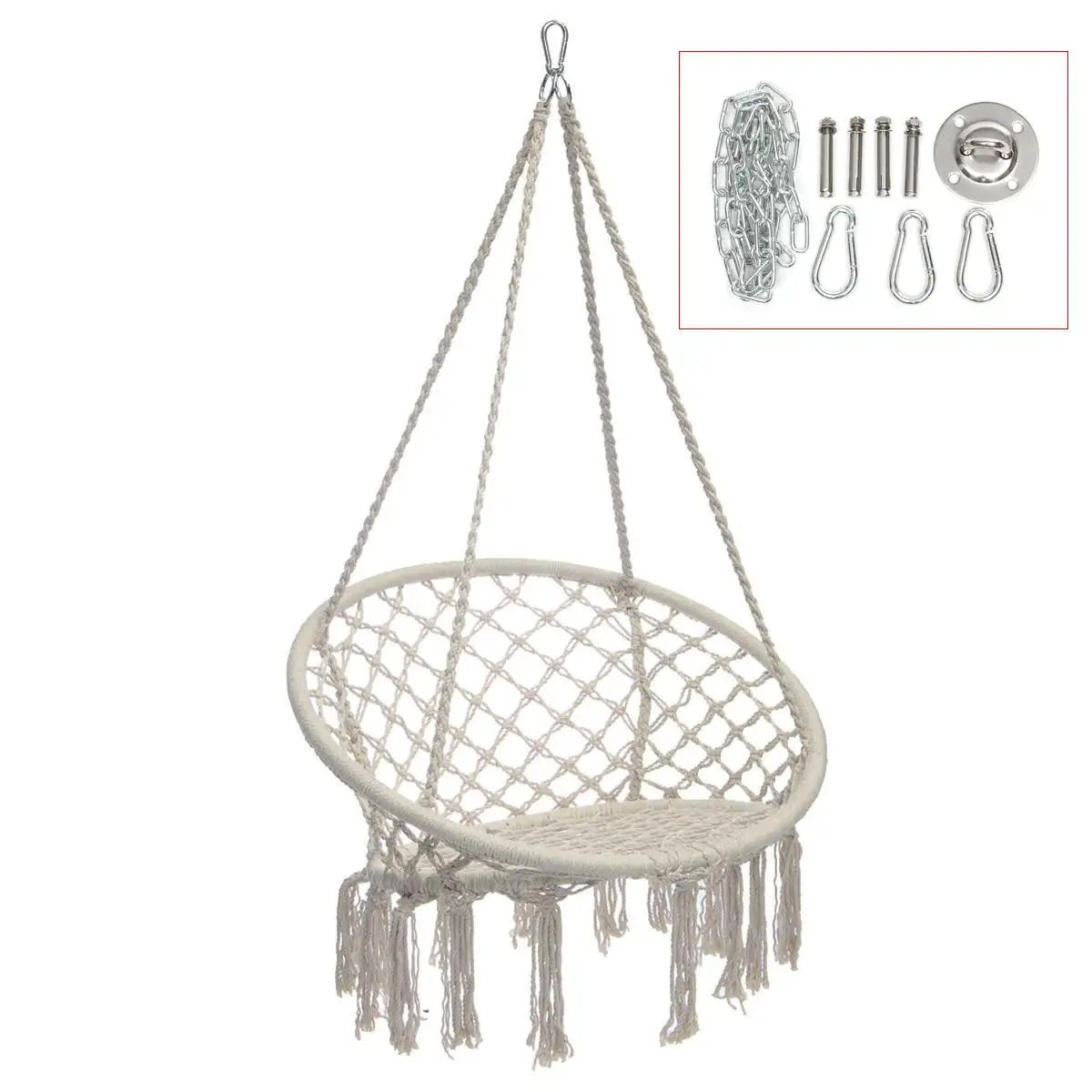 Nordic Style Round Hammock Outdoor Indoor Dormitory Bedroom Hanging Chair For Child Adult Swinging Single Safety Hammock White