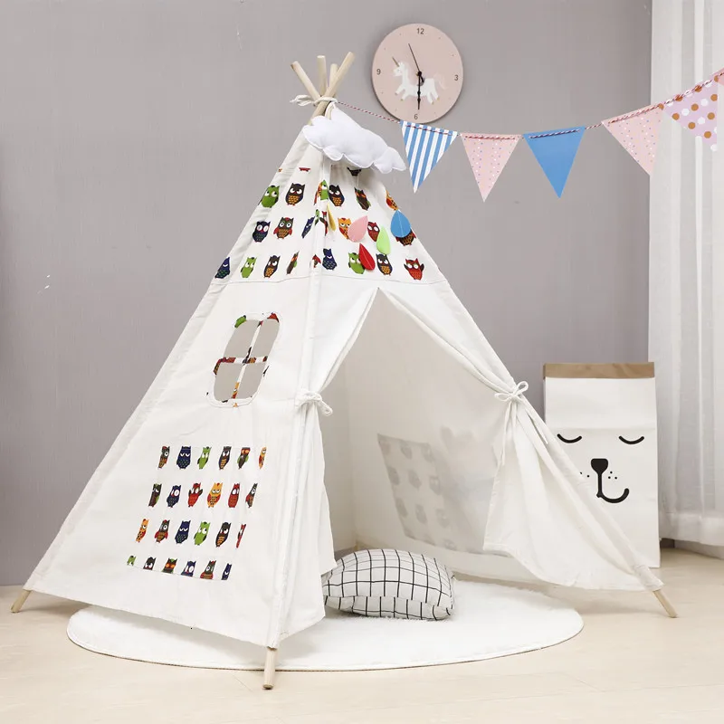 Nordic Style Wooden Support Canvas Tent Children Baby Play House Tent Light Roof Tipi Princess Room Indian Teepee Tent Kids Gift