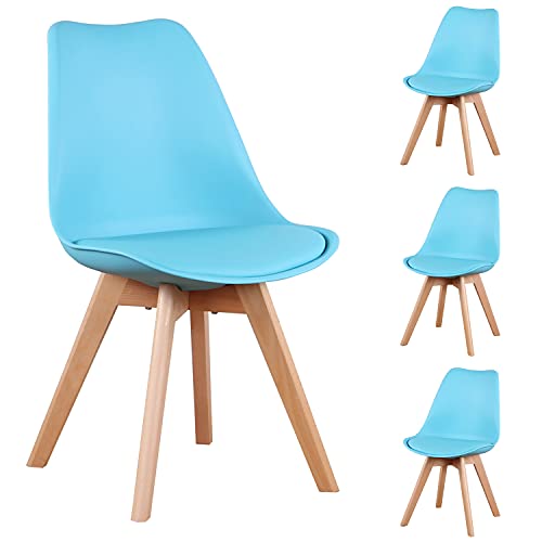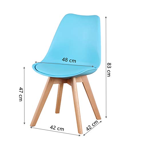 Nordic Time Un set di 4/6 sedia da pranzo imbottita, design ergonomico, 83 cm x 48 cm x 47 cm, adatta per sala da pranzo, camera da letto, sala di ricevimento (blu, 4)