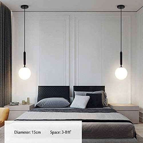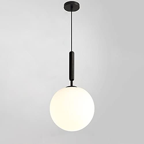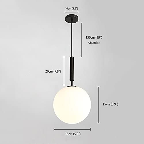 Nordico Sfera di Vetro Lampada A Sospensione, Semplice Bianco Latte Globo Paralume Regolabile in Altezza 12W LED Lampada Sospeso per Camera da Letto, Tavolo da Pranzo,Black+Neutral Light-15cm