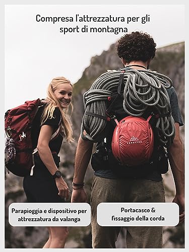 ZAINO TUTTO L'ANNO: escursionismo, sci alpinismo, alpinismo, zaino da turismo, via ferrata (la cintura dell'anca può essere rimossa se si usa un'imbracatura da arrampicata)