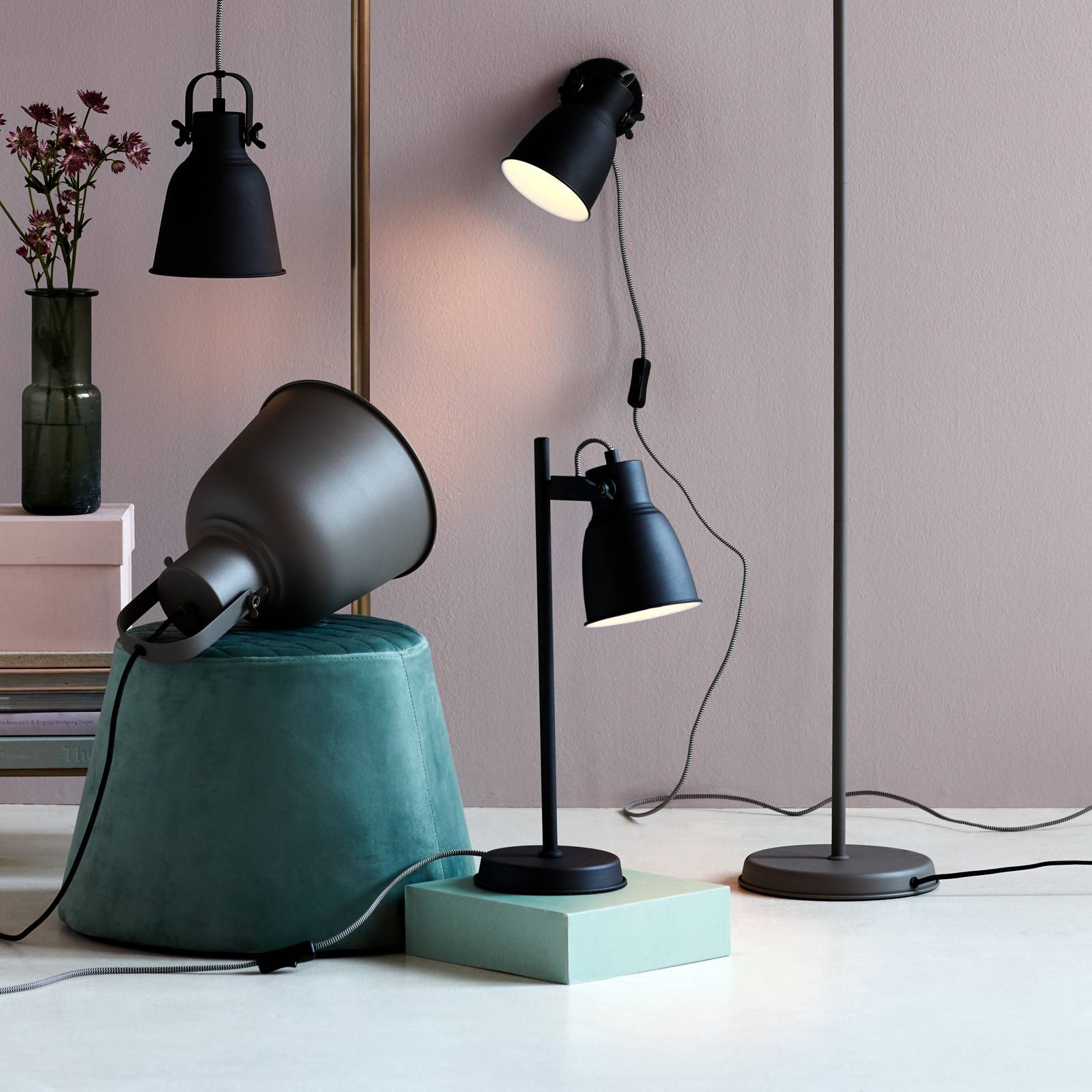 Lampada da tavolo Adrian con paralume metallico regolabile La lampada da tavolo Adrian porta sulla scrivania o anche sul comodino un tocco di fascino industriale. Il paralume metallico è fissato alla staffa con viti che permettono di orientarlo in modo da guidare il fascio di luce nella direzione preferita. Il tocco particolare è l'emissione di luce attraverso le viti laterali per un effetto suggestivo.
