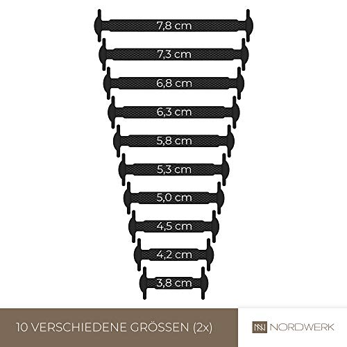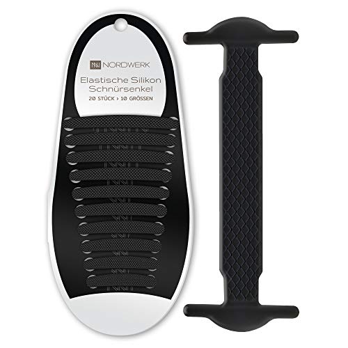 NORDWERK Lacci elastici in silicone piatti, 20 pezzi, senza lacci, per bambini e adulti (nero)