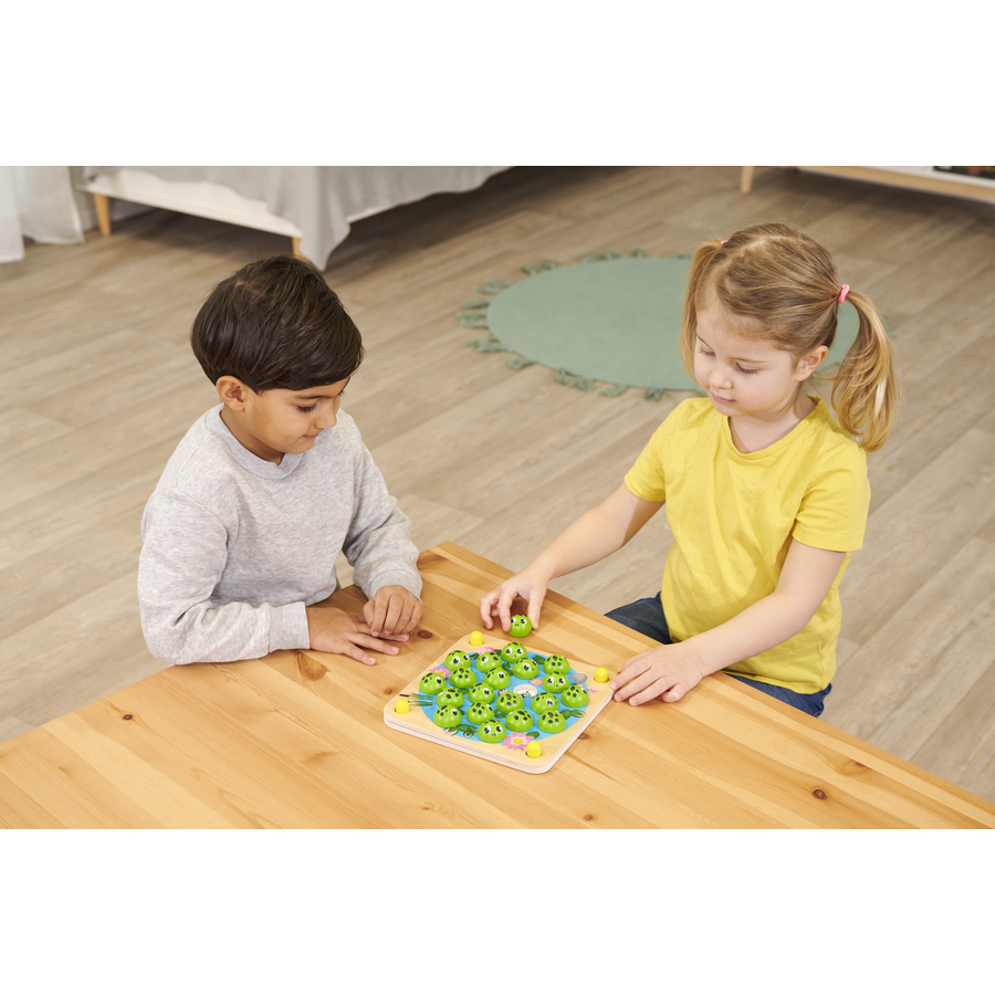 Dettagli del prodotto: Età: da 3 anni Divertimento con simpatiche rane in legno per i piccoli appassionati di memo Dimensioni e peso: Dimensioni della confezione (lunghezza x larghezza x altezza): 3,6 x 22,5 x 20,8 cm Peso: 0,485 kg Avvertenze e istruzioni di sicurezza: Attenzione: non adatto a bambini di età inferiore ai tre anni. Contiene piccole parti che possono essere ingerite. Pericolo di soffocamento!