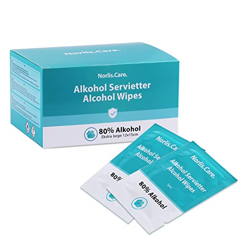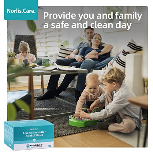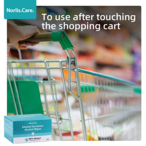 Norlis Care Salviettine Disinfettanti Da Viaggio Con 80% Di Alcol - 100 Bustine, 12 Cm X 15 Cm Taglia
