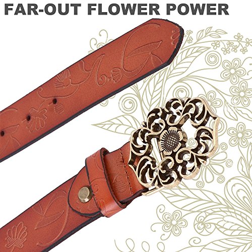 NormCorer Cintura di fibbia in pelle di cuoio genuino per i jeans (115 cm di lunghezza, Marrone)