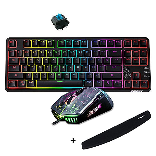 Normia Rita RGB Backlight Wired 87 Keys Mechanical Game Keyboard with Mouse, Over 16.8 Million Color Options, 9 Groups Backlight Adjustable, Switch MX Green - Black
