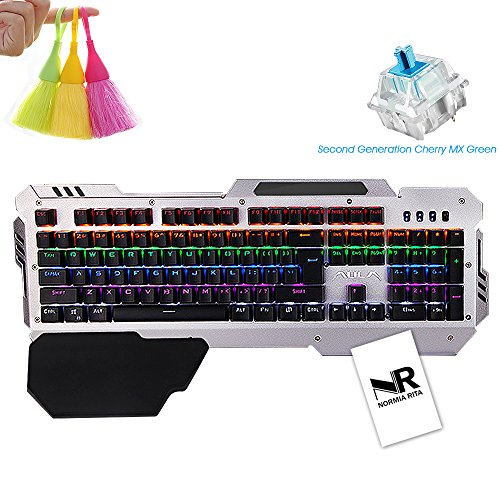 Normia Rita Mechanical Keyboard Wired Gaming Military Grade Metal Construction 104 non-conflict Keys Desktop Computer LOL Peripherals, Cherry MX Green - Black Silver