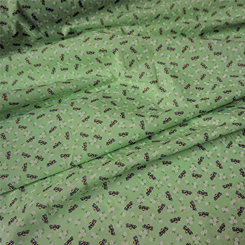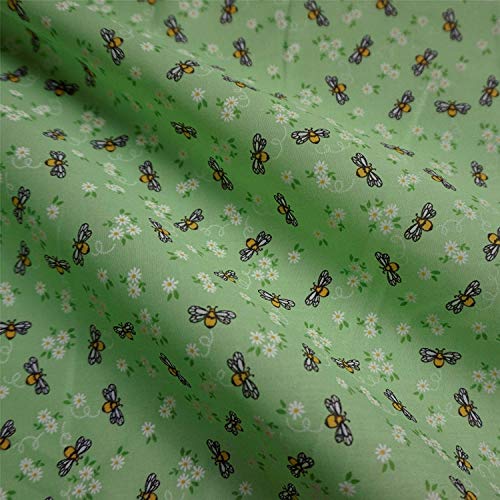 Nortex Mill Policotone Tessuto con Api e Fiori - 3 Colori - Molla Estate (al Metro) - Verde