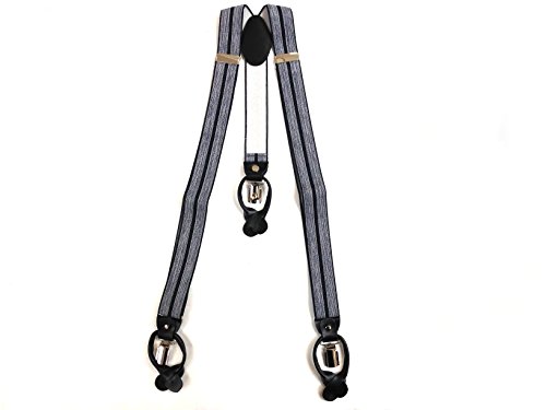 North Pole Bretelle uomo NPS03 in elastico larghezza 3 cm con attacco per bottoni o clip extra strong intercambiabile, dettagli in vera pelle (BLU/BIANCO)