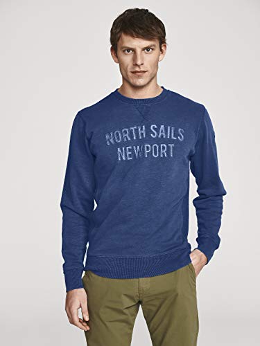 NORTH SAILS Felpa Uomo in Mare Azzurro - 100% Cotone con Girocollo A Forma di Triangolo Dettaglio e la Maniche Lunghe - XL