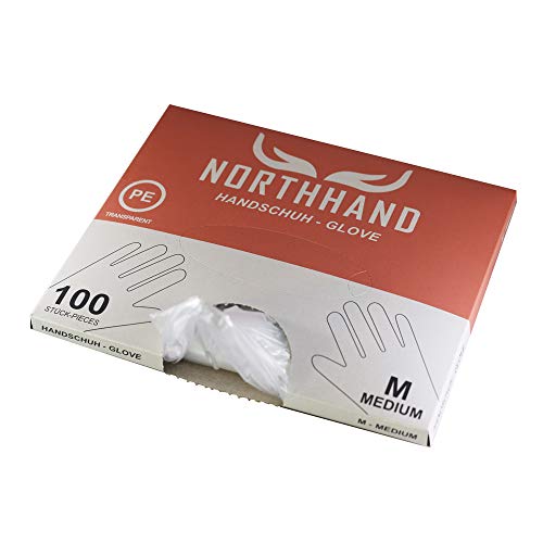 NORTHHAND Guanti monouso in polietilene, 1000 pezzi, in polietilene trasparente, pratica scatola dispenser per guanti monouso igienici (medio)