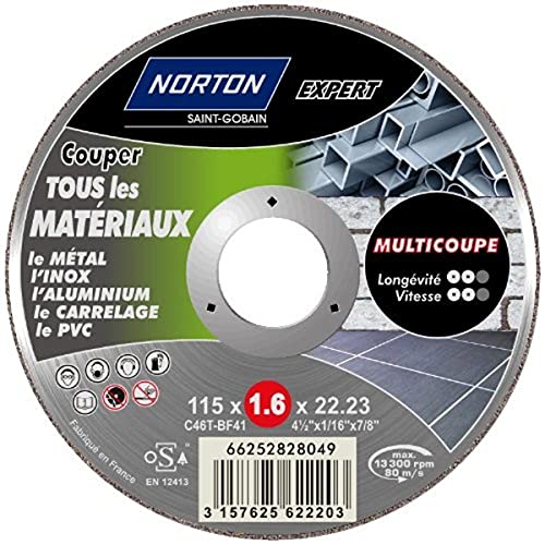 Norton - Disco da taglio ultrasottile per tutti i materiali 115 x 1,6 x 22,2 mm
